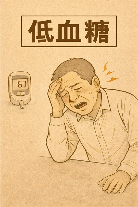 低血糖とは、血液中のブドウ糖(血糖)が不足して血糖値が70mg/dL未満になった状態です。糖尿病治療中の方に多く見られますが、糖質制限などの過度なダイエットや、激しい運動でも起こります。