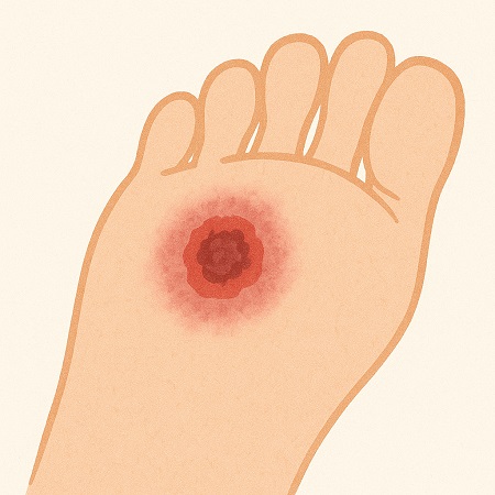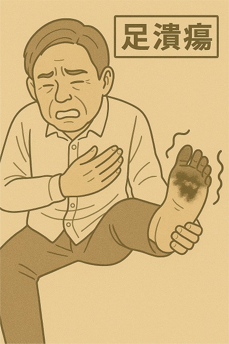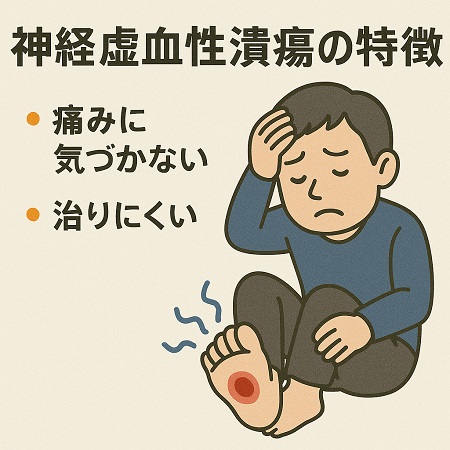 足に小さな傷ができても気づかず、そのまま悪化して深部に達すると、治りにくい潰瘍になります。