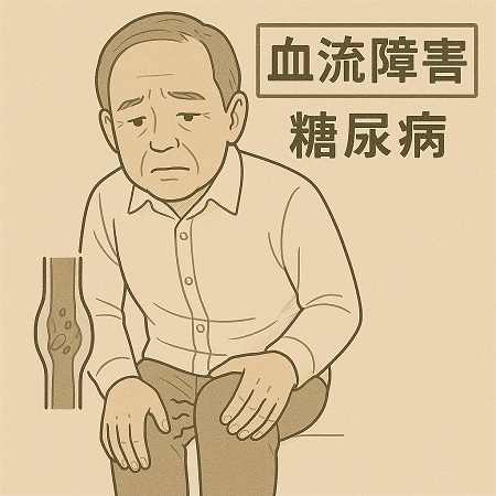 末梢の血管が傷つき血流が悪くなることで、神経も障害され、冷えやしびれ、痛みが現れます。