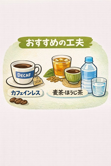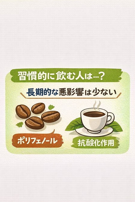 コーヒーを飲むと頭痛や、 動悸、めまいの症状があらわる場合には、血管拡張が原因の可能性があるので、頭を冷やすか、 コーヒーの量を徐々に減らすか、カフェインレスに切り替えることを検討してください