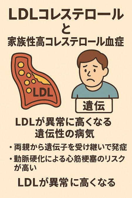 LDL コレステロールだけ高い原因として家族性高コレステロール血症(FH)という病気が考えられます。 家族性高コレステロール血症(FH)は、遺伝によってLDLコレステロールが非常に高い状態になる病気です。 家族性高コレステロール血症(FH)は、LDLコレステロールを肝臓に取り込む「LDL受容体」の遺伝子に異常があるため、血中のLDLコレステロールが肝臓に回収されず、血液中に蓄積してしまう病気です。