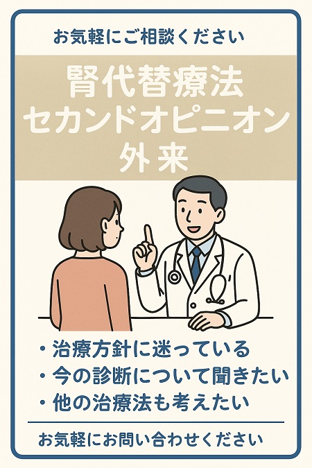 透析導入の時期、在宅治療の可否、移植希望など、どの段階でもご相談ください。