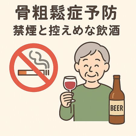 骨粗鬆症骨折の予防には適度な飲酒は重要です。アルコールの過剰摂取は骨密度低下やカルシウム排泄促進、転倒リスクを高めます。骨粗鬆症骨折リスクの高い閉経後の女性や高齢者は飲酒しない日を設けて骨の健康を守ることが重要です。