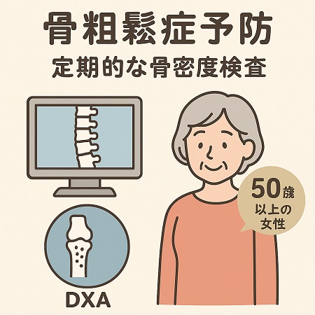 骨粗鬆症・骨折の予防には、女性は40歳、男性は50歳を目安に定期的な骨密度測定が重要です。特に閉経後の女性は1年に1回、骨折のリスクが高い場合は4~6ヶ月に1回を目安に骨密度の計測を行ってください。骨粗鬆症・骨折の予防には早期発見と早期予防が大切です。