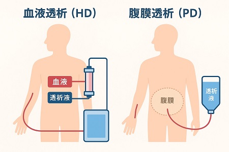 腹膜透析のデメリット: 腹膜透析は感染(腹膜炎)のリスクが高く、長期使用によって腹膜機能低下します。