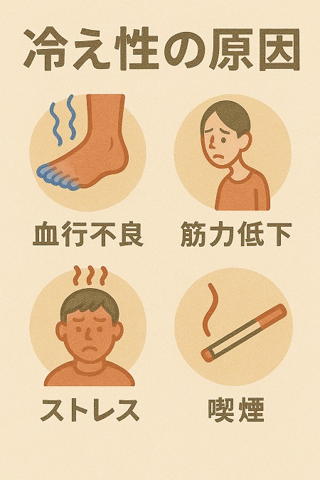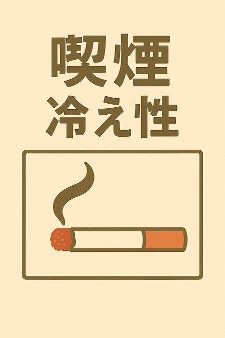 喫煙でニコチンが血管を収縮させ血行不良を起こします。また喫煙を継続することで動脈硬化を進行して末梢血管に十分な酸素や栄養が届かなくなることで冷え性が起こります。