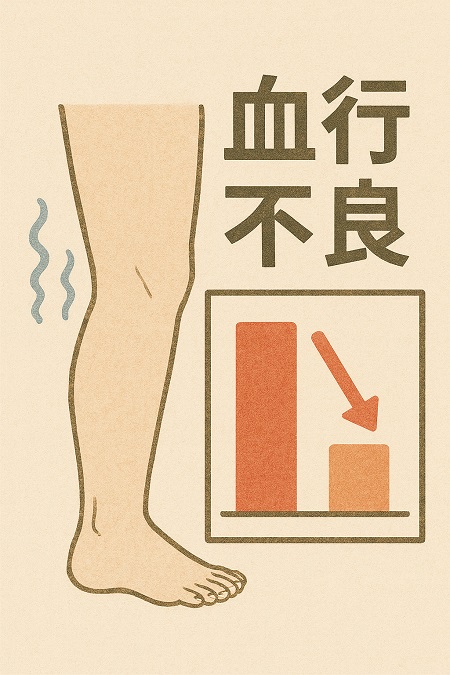 糖尿病で長期間高血糖が続くと血管の壁が厚くなり、血管を傷つけ、血流が減少します。糖尿病の血流障害には細小血管障害(網膜症、腎症、神経障害など)や大血管障害(動脈硬化による心筋梗塞、脳梗塞など)があり、特に手足の末梢血管の血流が悪化すると、神経への血流が悪化し足の冷え、足が冷たい、痺れるなど感覚が低下します。