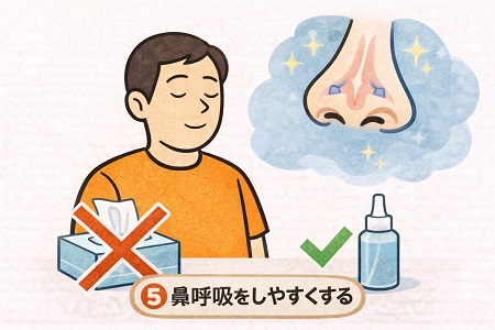 睡眠時無呼吸症候群を自力で治す方法として鼻呼吸は有効です。鼻洗浄、アレルギー治療、鼻中隔矯正術などで鼻の通りを改善する事で鼻呼吸の効果が上がります。鼻呼吸を行うことで上気道の閉塞を防ぎ、いびきや無呼吸の軽減、睡眠の質の向上に繋がります。 睡眠時無呼吸症候群が重症な場合にはCPAP(シーパップ:持続陽圧呼吸療法)で、鼻にマスクをつけて空気を送り込み、寝ている間の喉の空気の通り道を広げて無呼吸やいびきを軽減させます。CPAPを行うことで高血圧や心臓病などの合併症リスクを減らす効果が期待できます。