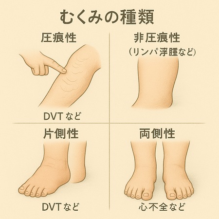 ■片足だけ、または両足のむくみに左右差がある場合には、深部静脈血栓症、リンパ浮腫、感染症、蜂窩織炎、または炎症などが原因として考えられ、命に関わる重篤な病気の可能性があるので早めに医療機関に受診ください