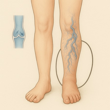 ‐むくみ(浮腫)、体重増加の原因・病気として下肢静脈瘤が疑われます。