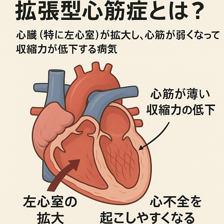 拡張型心筋症とは、進行性に心筋収縮能が低下し、左心室が拡大する心筋疾患(心臓病)です。