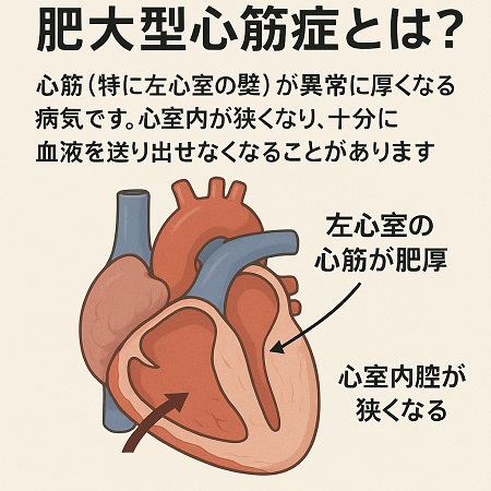肥大型心筋症とは高血圧など心臓肥大を起こす原因疾患がないにも関わらず、心室の壁が厚くなり、心肥大が原因で心臓のポンプ機能が低下する心筋疾患(心臓病)です