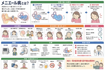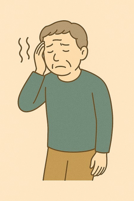 ■耳の病気(メニエール病)によるめまい・ふらつき:視界が回るような回転性めまいと、体がふわふわするような動揺性めまいの両方があり、ときにふらつきを感じることがある