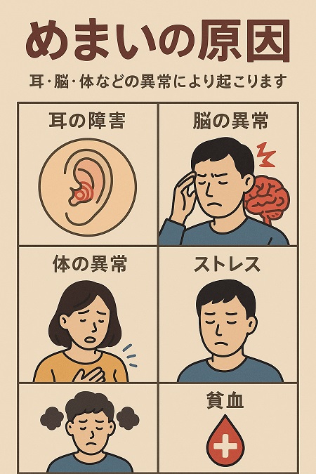 ■加齢によるめまい・ふらつき:平衡機能の低下、筋肉の減少、視覚や血圧調整機能の衰え、動脈硬化による脳への血流不足、疲労やストレス、更年期によるホルモンバランスの乱れなど多岐にわたります