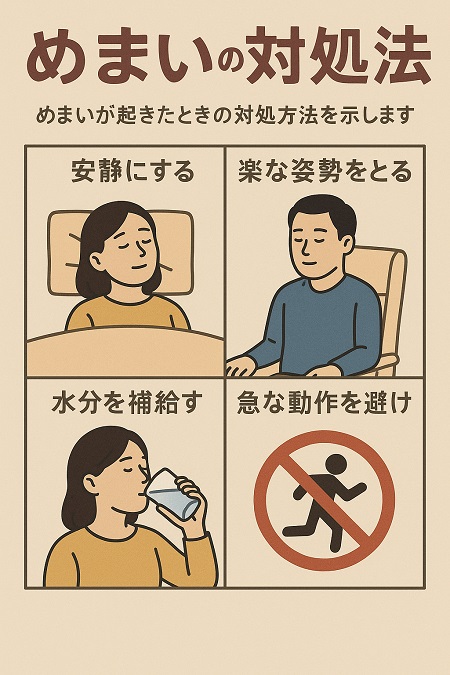 ‐めまいを感じたら、すぐに横になりましょう。まためまいの症状が落ち着くまで、急な動作は避けてください