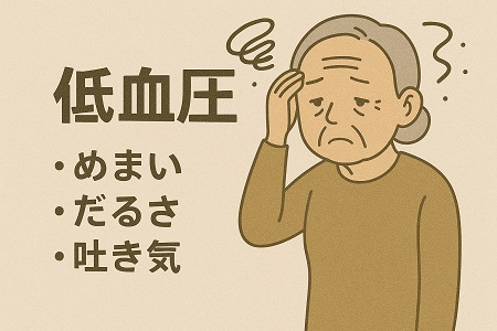 ■低血圧によるめまい・ふらつき:急な姿勢の変化で血流が一時的に減少する起立性低血圧や、食事後に血圧が下がる食後低血圧でよく見られる