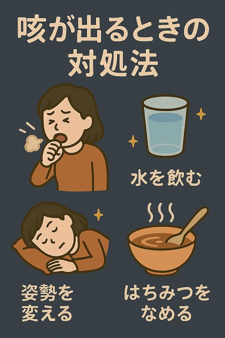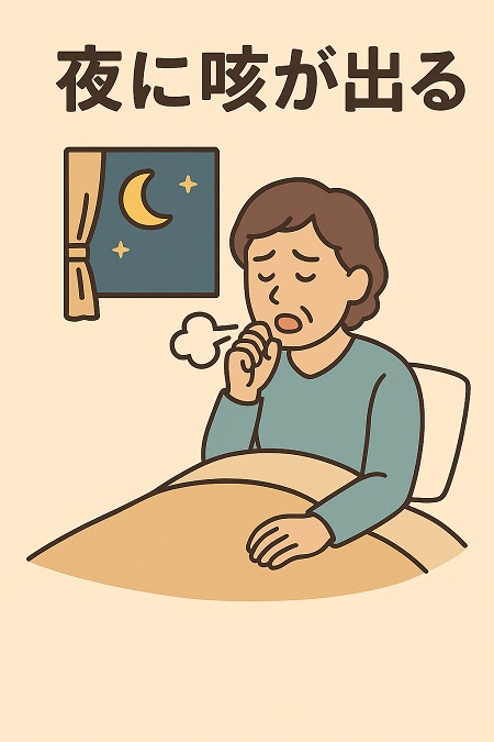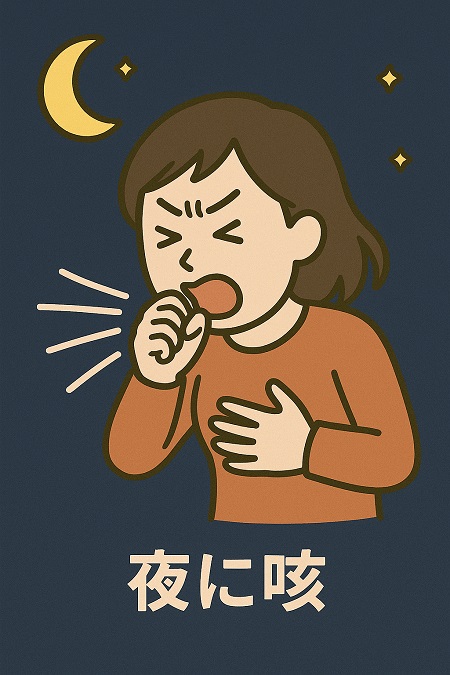 夜になると咳が出る対処法としては、部屋を加湿し、こまめに水分を摂る、寝る姿勢を工夫することが有効です。