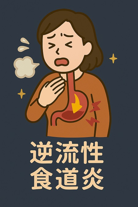 逆流性食道炎は胃酸などの内容物が食道に逆流して炎症を起こす病気で、胸焼けや呑酸(酸っぱいものがこみ上げる)などの症状が現れます。 逆流性食道炎の原因には食べ過ぎ、早食い、肥満、喫煙、飲酒などがあり、食生活や生活習慣の改善、薬物療法が治療法となります。 逆流性食道炎によって胃酸が食道や喉に逆流し、刺激を与えることで咳が出ます。典型的な咳の特徴は、逆流性食道炎による咳は食後や就寝時に悪化しやすく、乾いた咳が長引くこと、胸やけや喉の違和感を伴うことが特徴です。