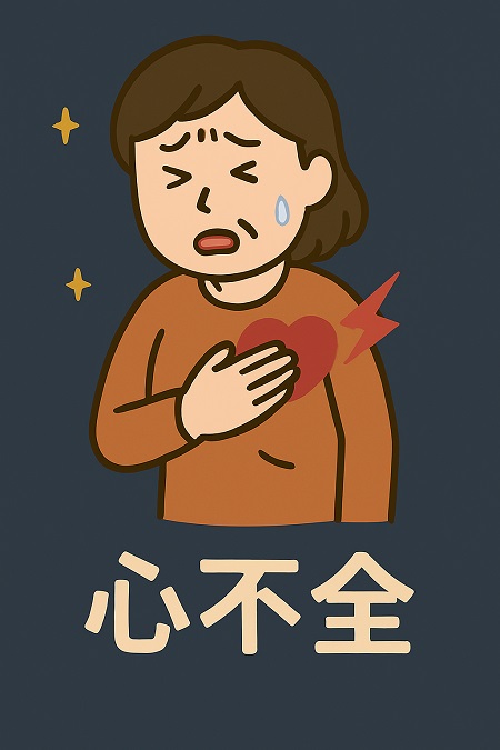 慢性心不全による咳は、心臓の機能が低下し、血液の循環が悪くなることで肺に血液が溜まり、 血液中の水分が肺の組織にしみ出し、痰として排出されようとするため痰と咳が出ます。夜間や朝方や横になると咳が出るのと、体を起こすと楽になったり、咳をする際に息切れを伴ったり、ピンク色の痰が出ることが特徴です。