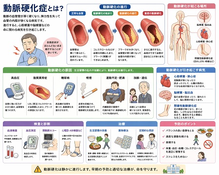 慢性的な高血糖が続くと、体中の血管がしだいにぼろぼろになり、眼、腎臓、神経などの障害や、動脈硬化促進による心筋梗塞、脳梗塞、末梢動脈閉塞症などの合併症を誘発する可能性が高くなります。