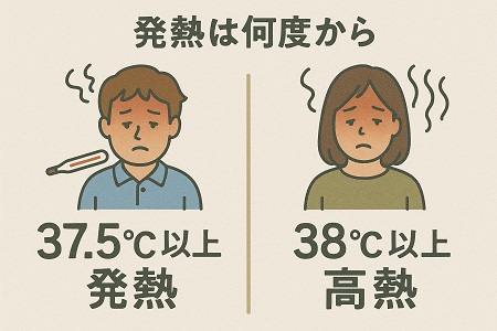 日本では感染症法において『37.5℃以上を発熱、高熱は38℃以上』と定義されています。