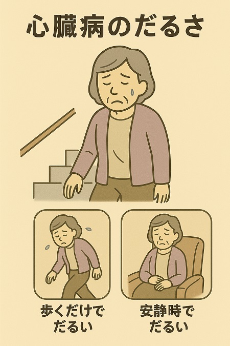 心臓病の代表的な症状であるだるさ、倦怠感、食欲不振は、心臓のポンプ機能が低下することで全身への血液の供給が不足し慢性的な酸素不足が原因で起こります。