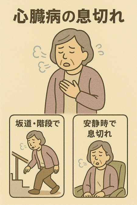 心臓病の代表的な症状である動悸や息切れと合わせて、心臓がドキドキしたり、脈が速い、遅いなど脈が飛ぶような症状など、心臓の異常を自身で感じることがあります。安静にしても動悸や息切れの症状が改善しない場合や、胸の痛み、めまい、失神などを伴う場合は、すぐに循環器内科を受診してください。