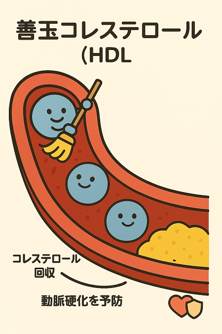 ※HDLコレステロール(善玉コレステロール)は、体に蓄積したコレステロールを肝臓に運んだり、血栓予防、血管内壁の維持、血液凝固の予防や、抗酸化作用として活性酸素を除去することで細胞を保護し、動脈硬化を防ぎます。