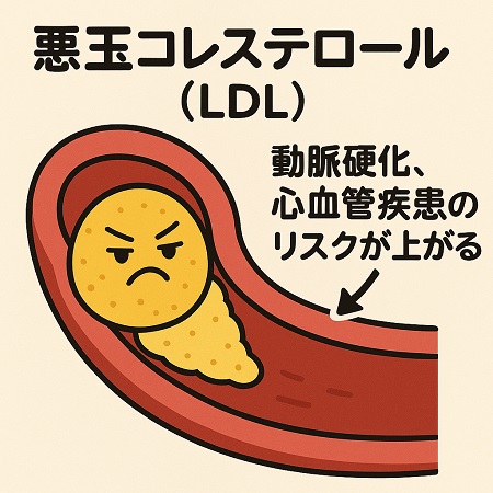 ・LDLコレステロール(悪玉コレステロール)が高いと心筋梗塞のリスクが上がります: