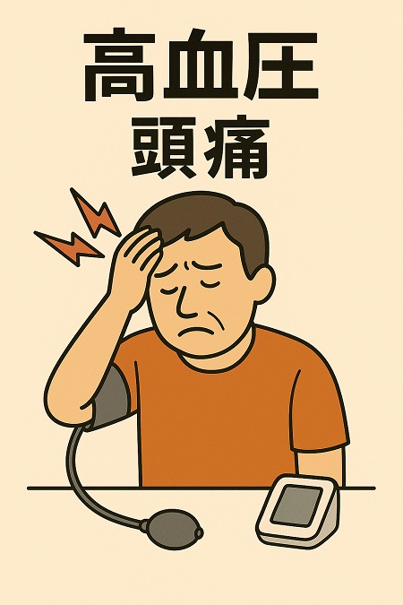 血圧が高い状態が続くと血液が血管の壁を強く押すようになり、血管が圧迫されて血管の周りの神経が刺激され、ズキズキとした痛みや頭全体を締め付けられる重い頭痛が起こります。起床時に特に頭痛が起こりやすいです。