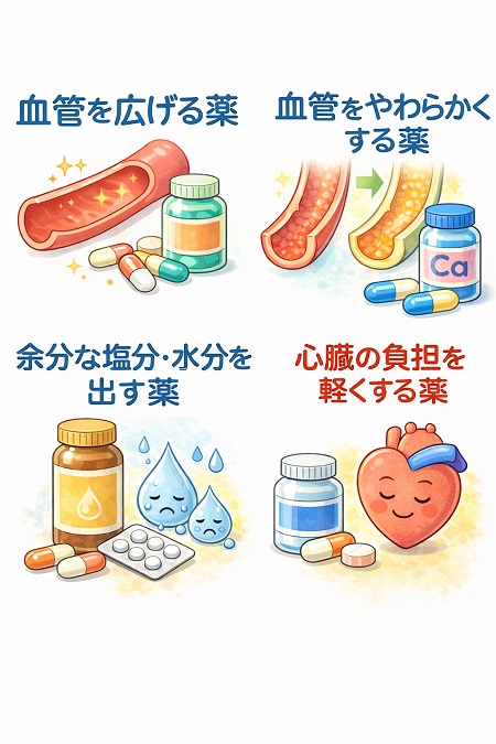・味付けを薄くして塩分摂取量を抑える ・適度な運動と体重管理を続ける ・血圧を毎日決まった時間に測定し記録する ・アルコールやカフェインの摂取量に注意する・十分な睡眠を取る。