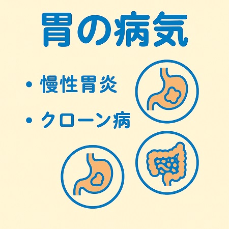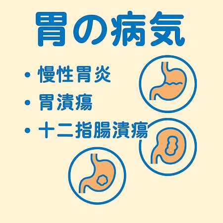 胃や十二指腸に炎症が起こりびらんや潰瘍など胃壁が傷ついているような状態になっていると、胃痛、悪心(吐き気)・嘔吐、胸やけ、胃もたれなど様々な症状が現れ、食事量が減り体重が減少します。