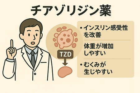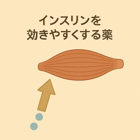 インスリンを効きやすくする薬:ビグアナイド薬、チアゾリジン薬、グリミン系