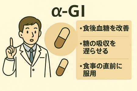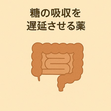 - ・主な作用:糖吸収遅延 特徴:小腸で糖質の消化吸収を遅らせることで食後の血糖値の急激な上昇を抑える。糖質の分解と吸収を遅らせるのが特徴で、特に食後高血糖を低下させる。重篤な低血糖を起こしにくい